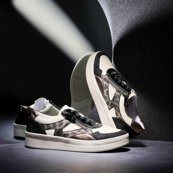Ultraleichte Laufsohle mit extra weichem herausnehmbaren Fußbett Obermaterial aus Glattleder Reißverschluss + Schnürung Gepolstertes und herausnehmbares Fußbett Besonders leichte und flexible Sohle